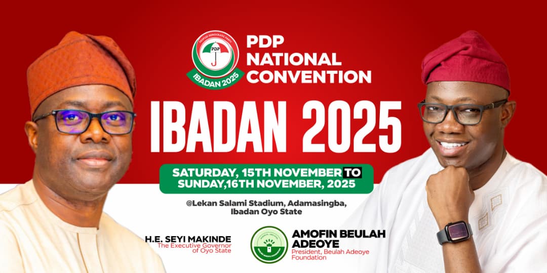 Amofin Beulah Adeoye, founder of the Beulah Adeoye Foundation, has welcomed distinguished delegates, party leaders, and cherished members of the People’s Democratic Party, PDP to the historic Ibadan 2025 National Convention.