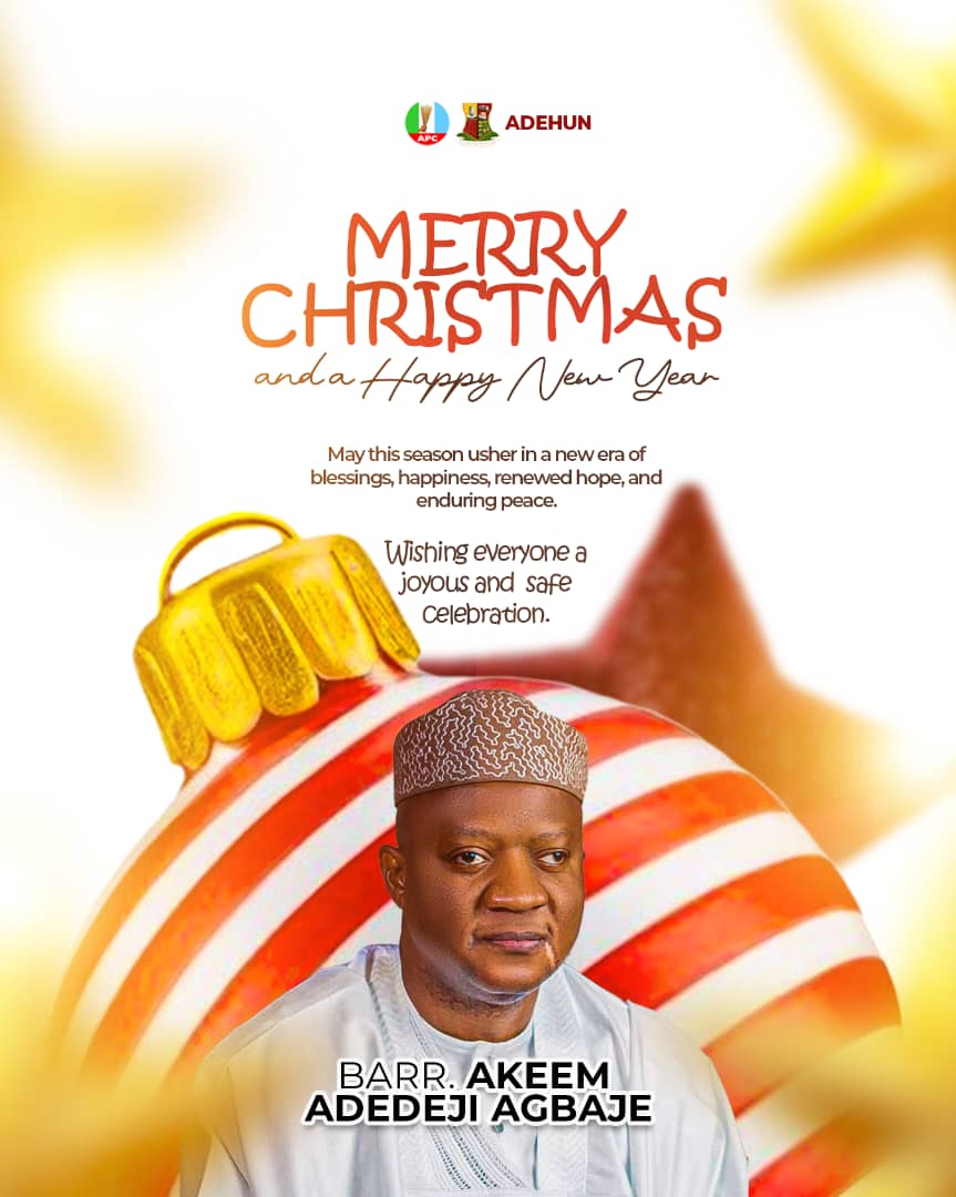 A chieftain of the All Progressives Congress (APC) in Oyo State and a 2027 gubernatorial aspirant, Barr. Akeem Agbaje, has extended Christmas greetings to the people of Oyo State and Nigerians across the country, urging them to remain steadfast in faith and hopeful for a more peaceful and prosperous nation.